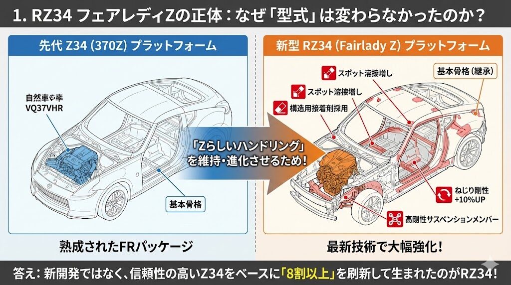 1. RZ34 フェアレディZの正体:なぜ「型式」は変わらなかったのか?