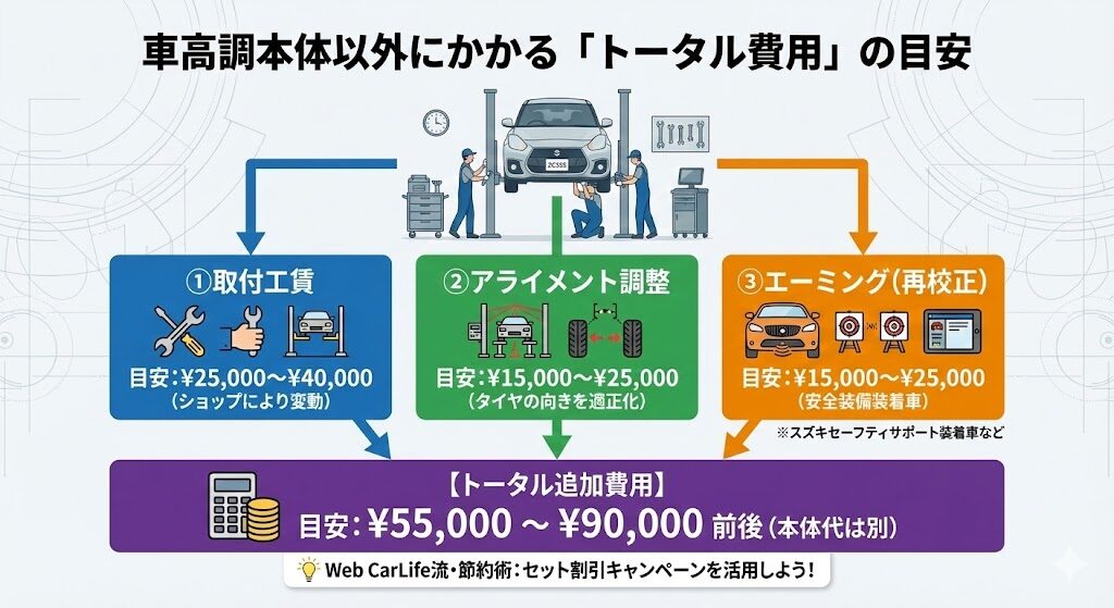 5. 車高調本体以外にかかる「トータル費用」の目安