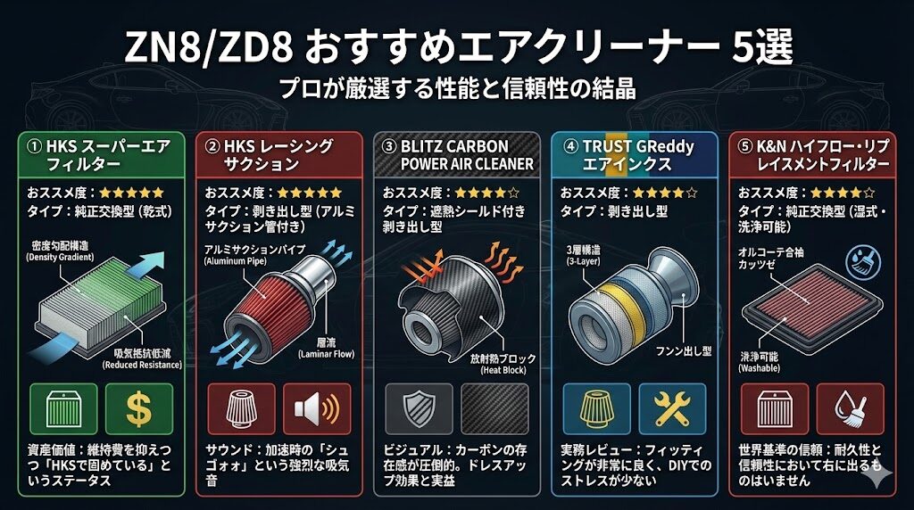 【最新】ZN8/ZD8おすすめエアクリーナー5選!吸気効率と「熱害」の相関をプロが徹底解説